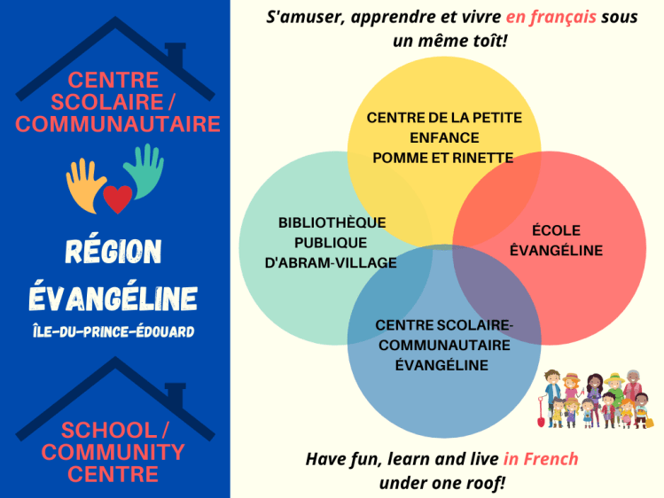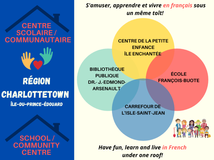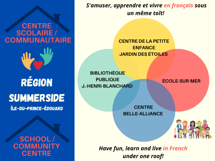 On Prince Edward Island, we have 6 school community centres that allow us to have fun, learn and live in French under one roof. Each of the 6 centres includes: an early childhood centre, a school, a community centre and a public library (in 3 of the centres). These partners are interconnected and share the same goal of offering services where living one’s language and culture to its fullest potential in our own island community is possible.